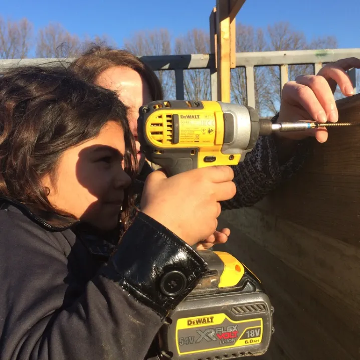 La tyrolienne a été installée à partir de la paroi-pneus construite pour l’école 1.