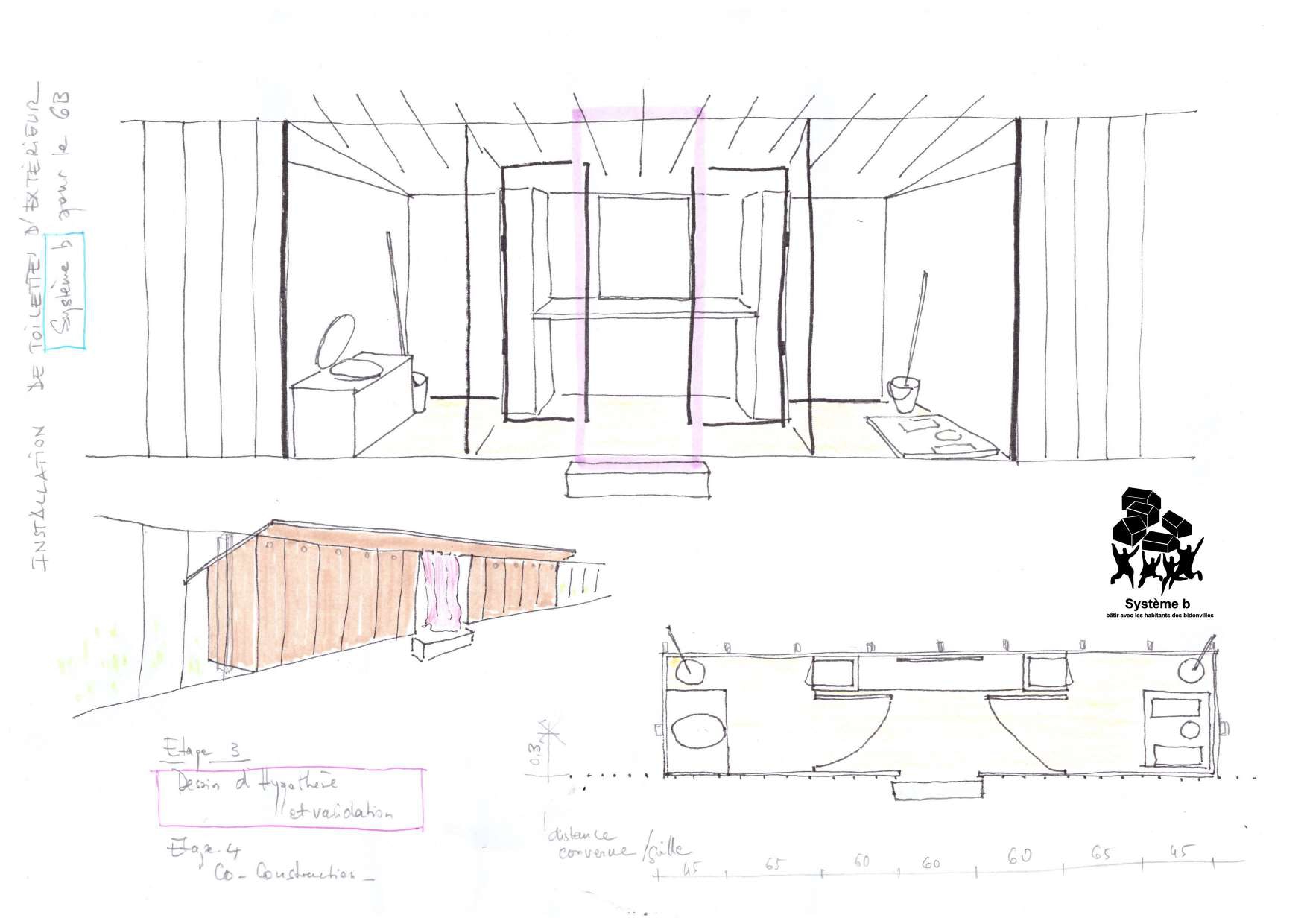 Ont participé à ce chantier avec Système b : les habitants du terrain, les étudiants du cours « Bidonvilles et habitats précaires » de l’Eav&t, Lo, Marie, Guillaume Nicolas