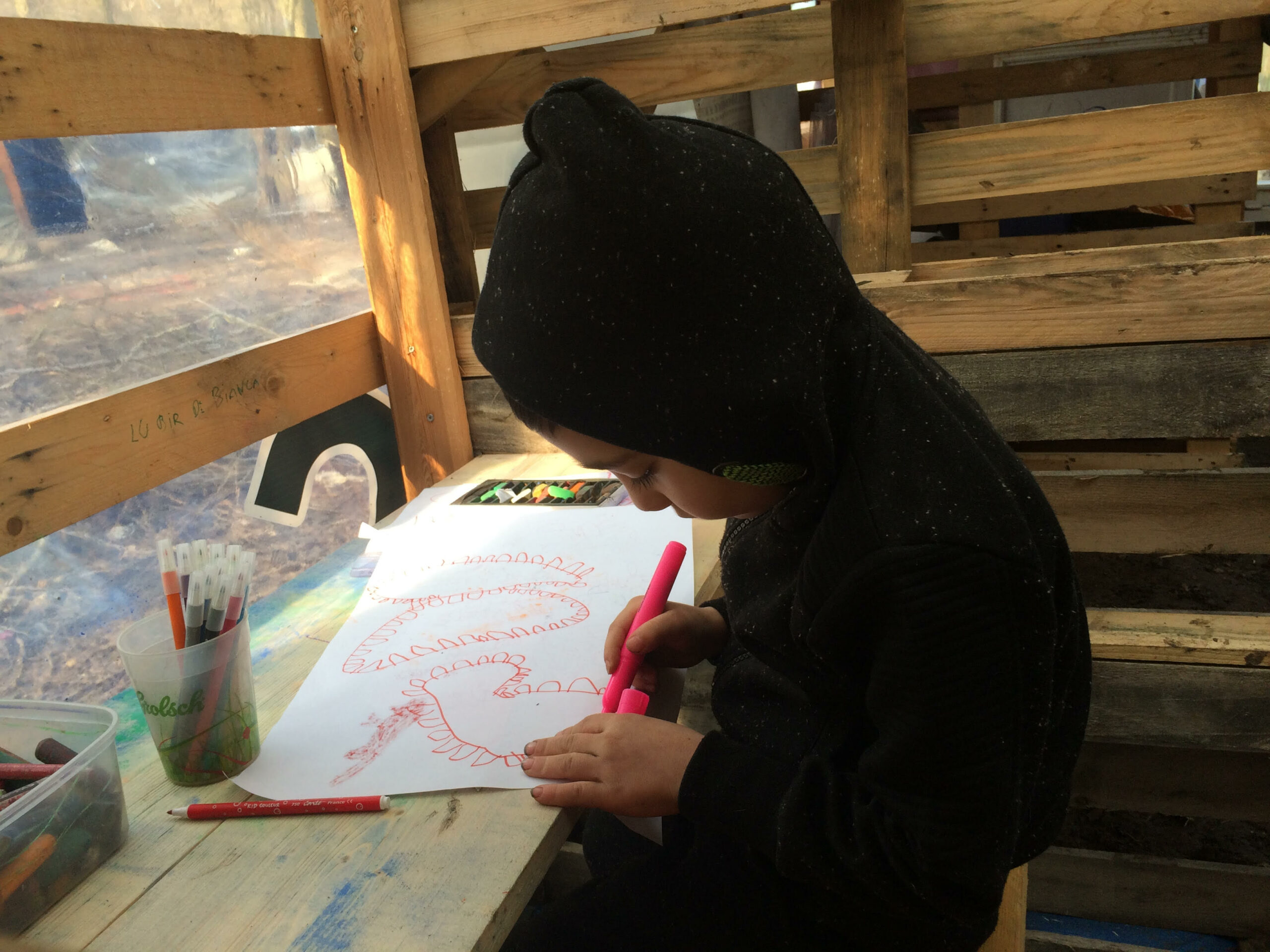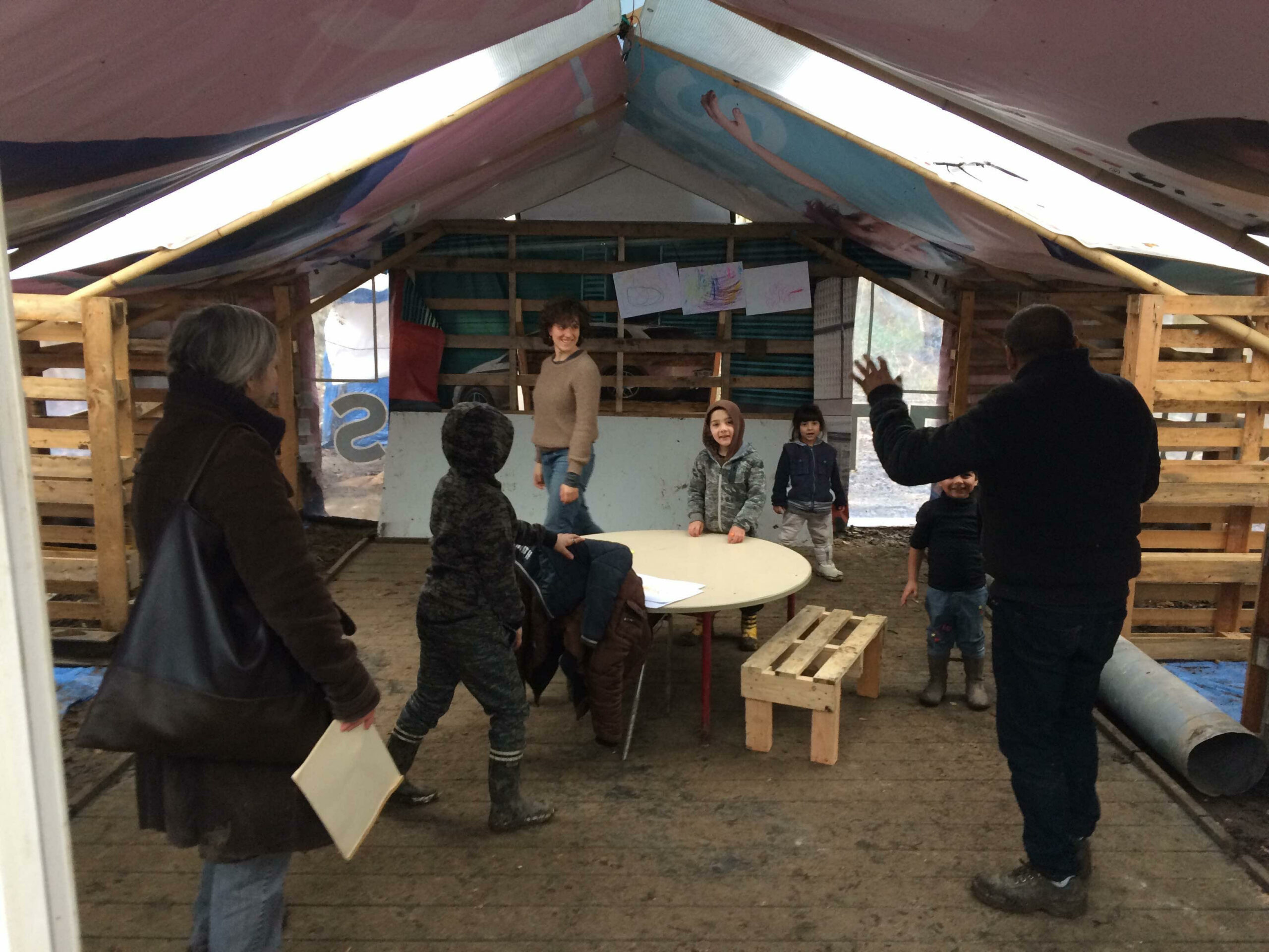 Deuxième « école » construite à la demande des habitants d’un platz, en plein hiver, conçue pour être déplacée et reconstruite rapidement après une expulsion.